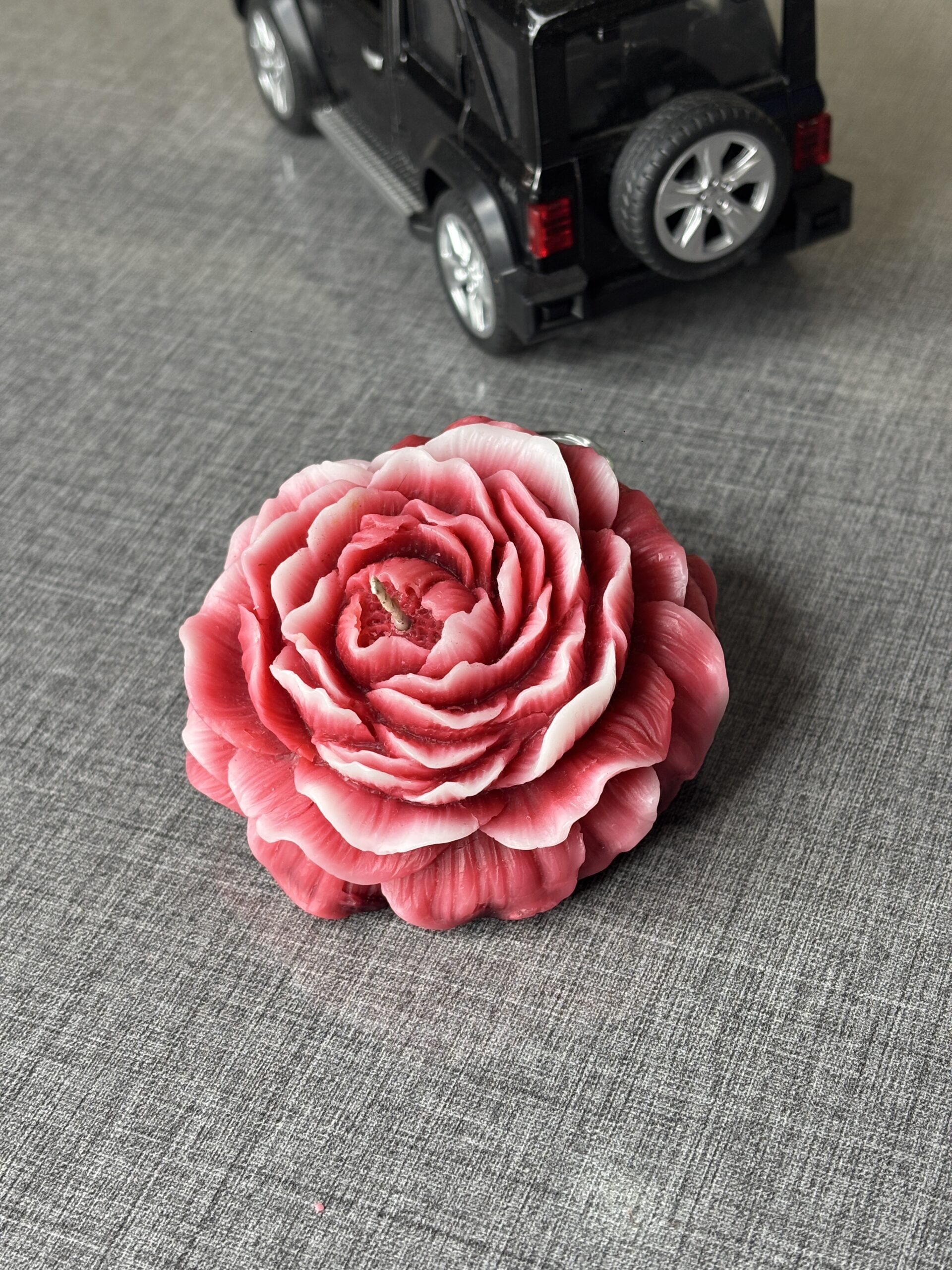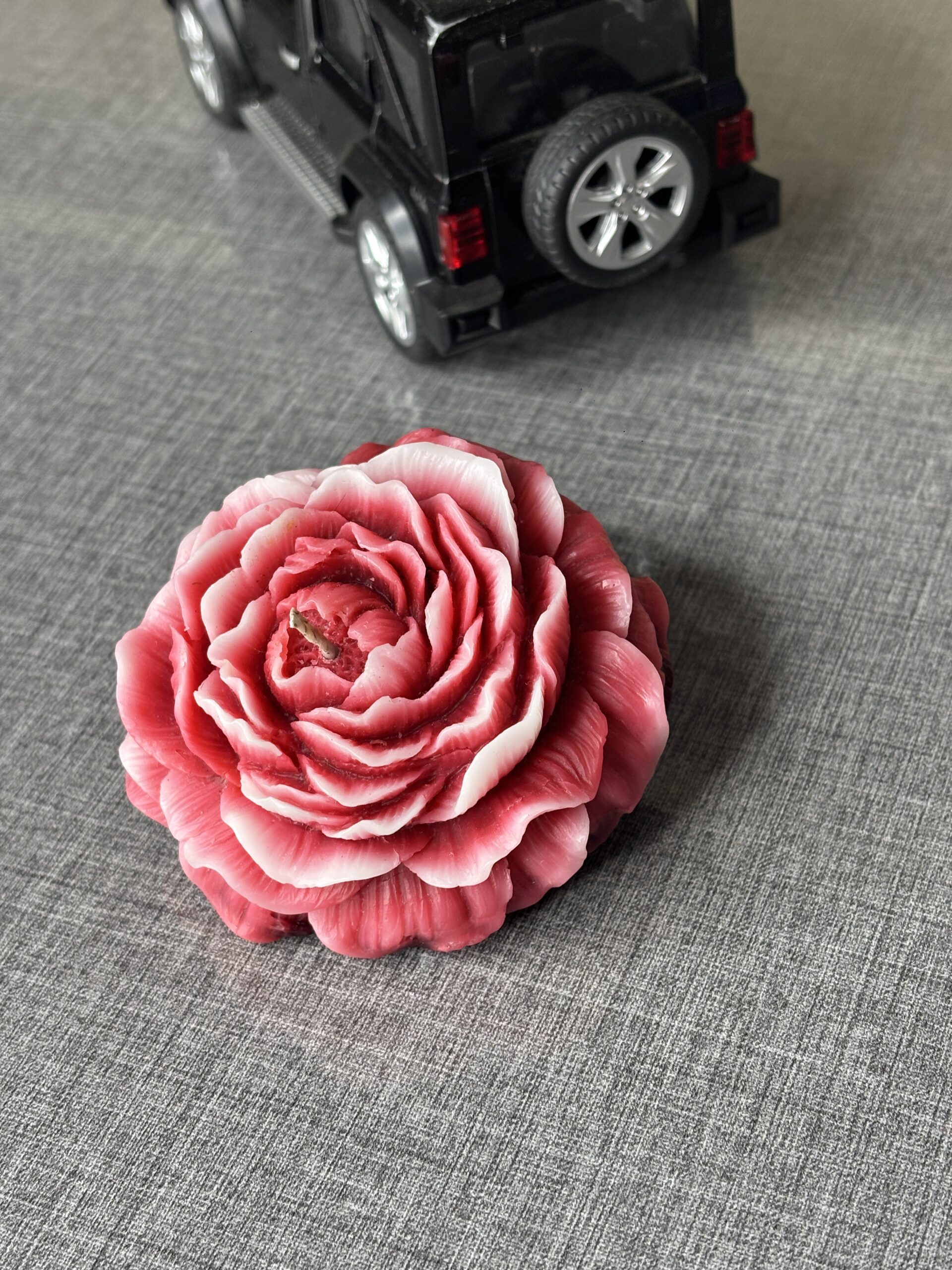 Bring the beauty of a botanical garden indoors with our Shaded Peony Flower Candle in Red. This isn’t just a candle; it’s a hand-sculpted piece of floral art. Featuring dozens of meticulously layered petals with a stunning ombré effect—deep red fading into soft white edges—this candle captures the elegance of a flower in full bloom.