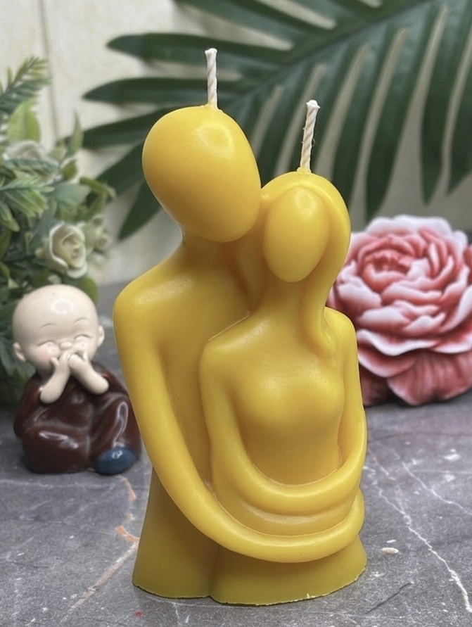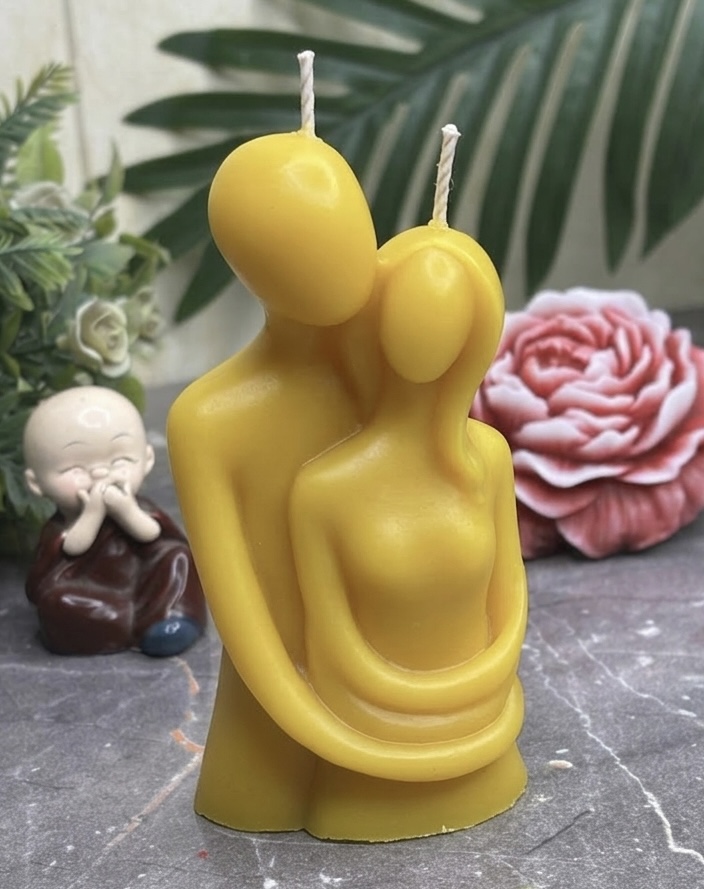 Celebrate the bond of love with our Eternal Embrace Couple Candle. This beautifully minimalist sculpture depicts two souls in a gentle, warm embrace. Crafted with a sleek, modern finish, this candle serves as a powerful symbol of companionship, unity, and love. Its striking yellow hue adds a touch of warmth and positivity to any room, making it a perfect decorative statement.