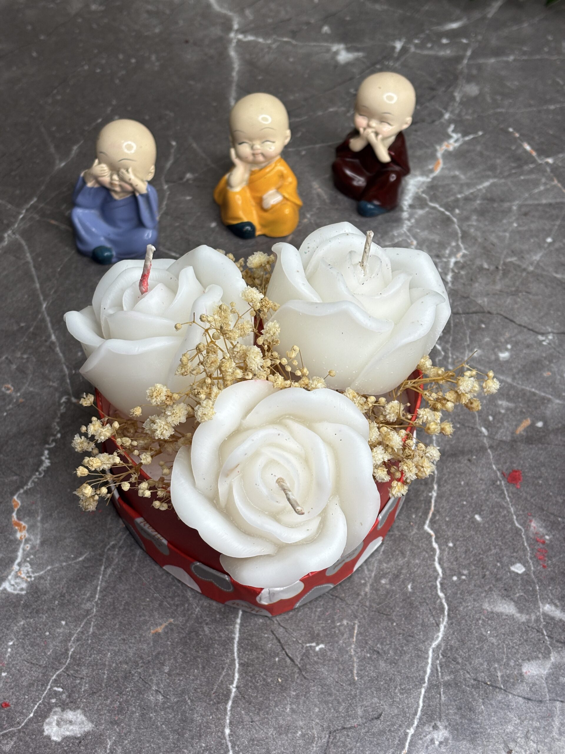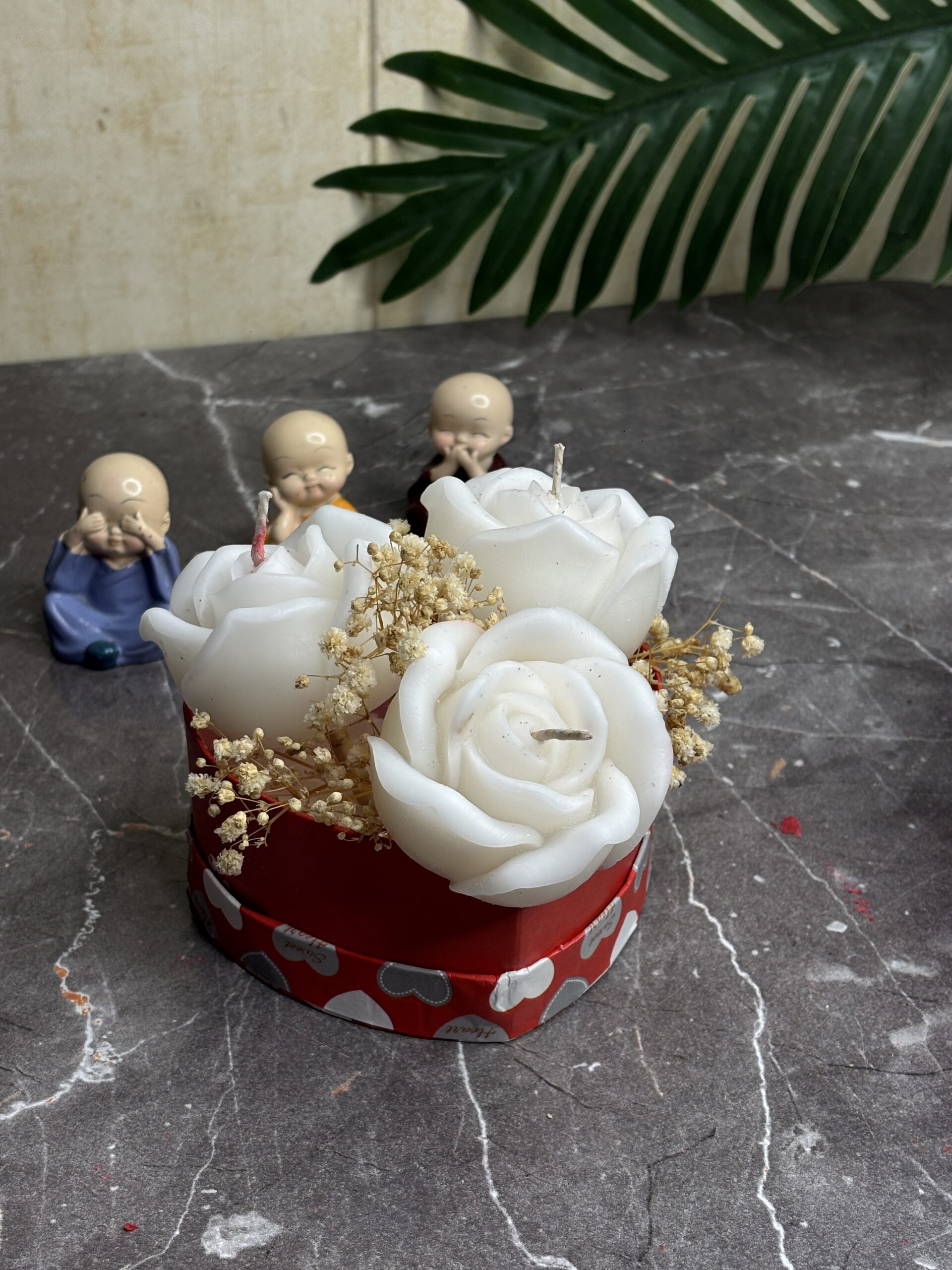 Celebrate pure love and sophistication with our Triple White Rose Heart Bloom Box Candle. Masterfully handcrafted, this set features three intricately carved, serene ivory white wax roses, presented with a delicate garnish of natural dried baby’s breath flowers within a lovely heart-shaped gift box. This is a refined gift designed to express heartfelt affection, offering a lasting alternative to a traditional bouquet. Perfect for weddings, anniversaries, or to show someone special that they are cherished.